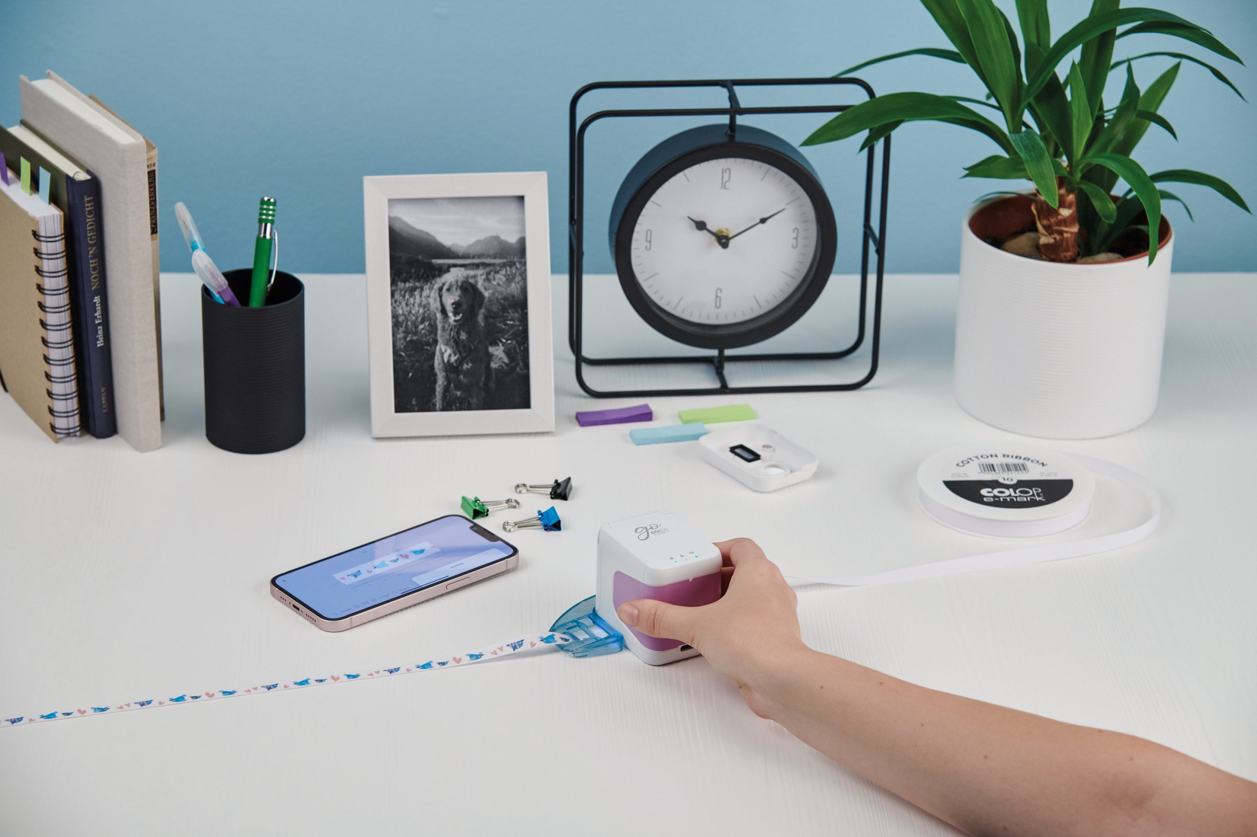 | Ghidajul pentru panglici e-mark go este o unealtă versatilă pentru personalizarea panglicilor. Acesta este compatibil cu rolele de 10, 15 și 25 mm lățime și a fost gândit pentru a fi folosit cu ușurință împreună cu panglicile e-mark și rolele de etichete. Ghidajul e-mark go este fabricat în Austria în culoarea elegantă verde salvie și are dimensiunile compacte de 123 x 10 x 24 mm.